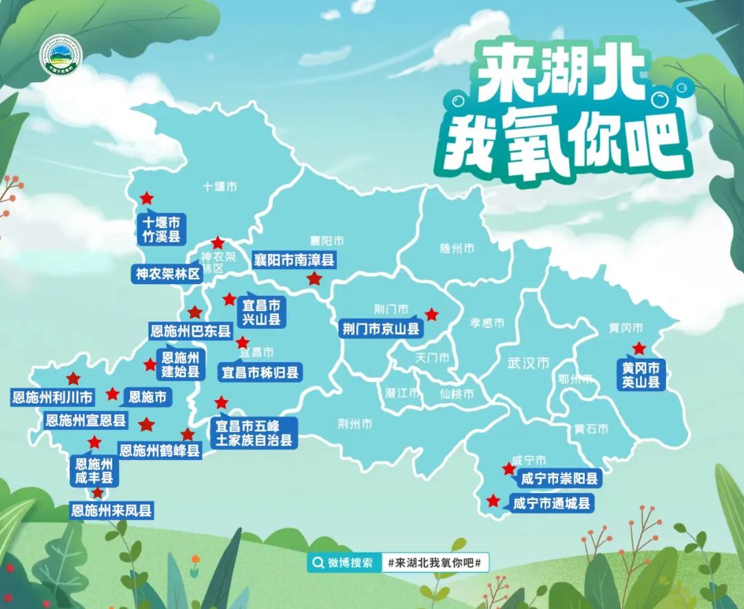 湖北省“中国天然氧吧”地图(截至2022年共有18个地区获评)来源:湖北省气象服务中心