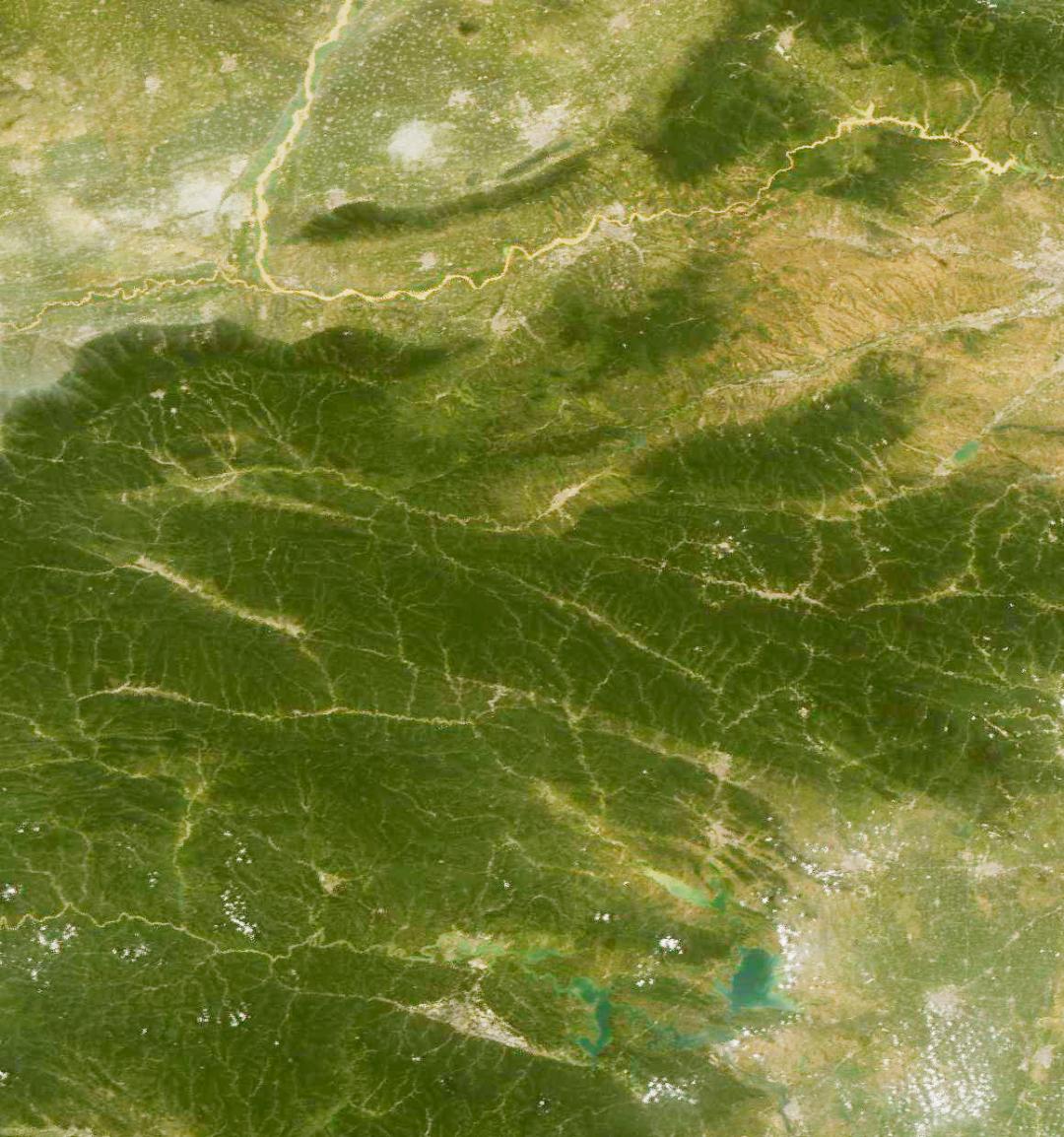 三门峡植被情况,2022年7月24日风云三号D星真彩色监测图 来源:国家卫星气象中心(国家空间天气监测预警中心)