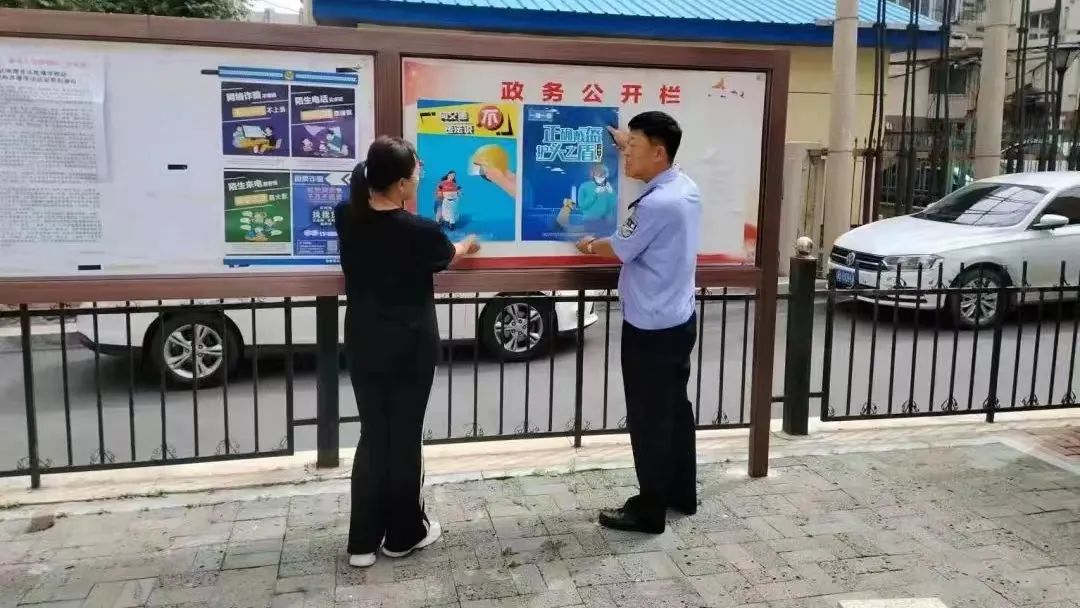民警在社区宣传栏与社区人员共同粘贴“一盔一带”交通安全宣传提示贴,向居民宣传“一盔一带”交通安全重要性。他们用拉家常方式,向在场社区居民讲解交通安全注意事项,倡导大家遵守交通法规,保障自身生命财产安全。