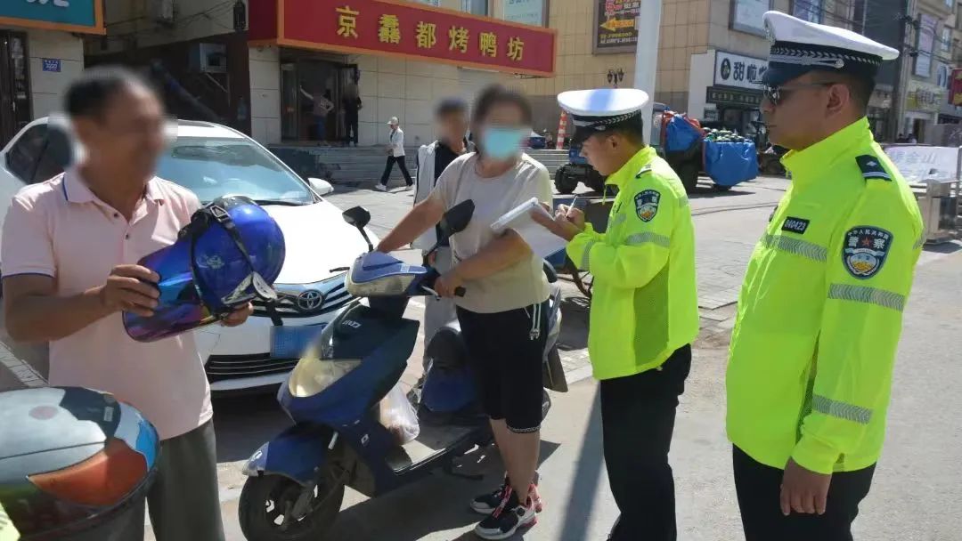 近日,通榆县公安局交巡警大队在城区持续开展规范佩戴安全头盔劝导行动,督促电动自行车骑乘人员,养成自觉佩戴安全头盔、遵规守法安全出行的良好习惯。