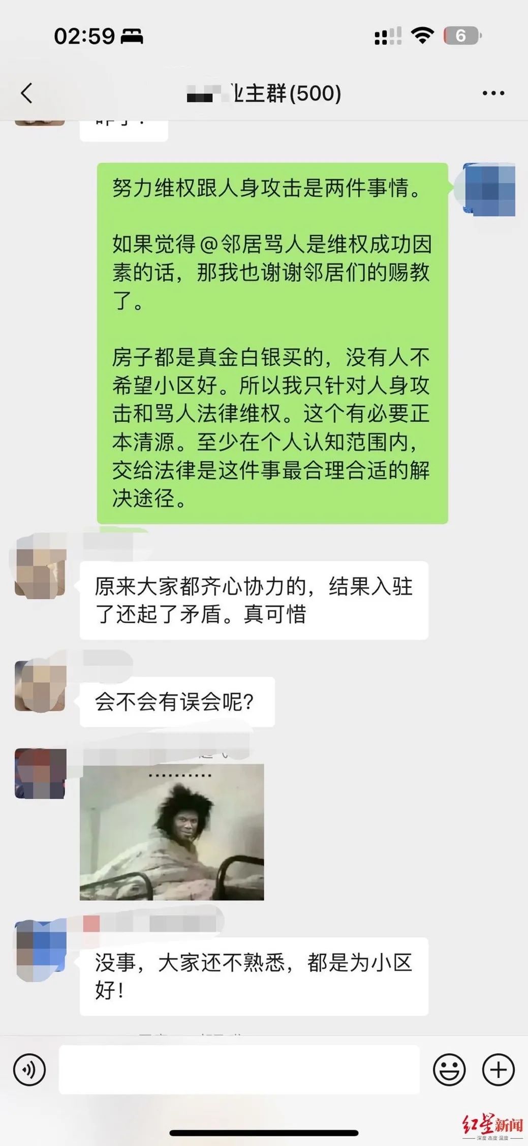 何先生表示,此前大家在业主群讨论时,对方就有点“阴阳怪气”,在群里说“业主代表是怎么选的?凭什么代表他?”之类的话,他气不过,就在群里骂了他。