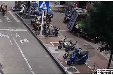 监控画面显示,女孩先是骑车到停车位,但此时有一个细节,这辆电动车有一个细微的向前冲的动作。请看——