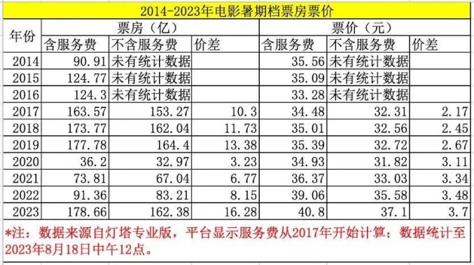 灯塔专业版显示的近十年暑期档票房及影片数(截至2023年8月16日)“柳州1号”视频号今日关注↑↑↑