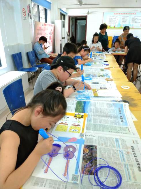 不仅如此,为了让科技走近孩子们的生活,鞍山三村居委举办了一场特别的青少年兴趣体验活动“神笔马良3D打印笔体验”。老师向同学们介绍了3D打印的原理,以及如何设置、启动打印笔等注意事项;然后插上电源,点击启动,插入耗材,就能看见各种颜色的材料从“笔头”钻了出来。之后,老师又向大家展示了使用3D打印笔做出的精彩作品,有建筑、动物、日用品等,十分生动,立体感十足。同学们兴奋地聚集在一起,准备进入3D打印笔的奇妙世界。