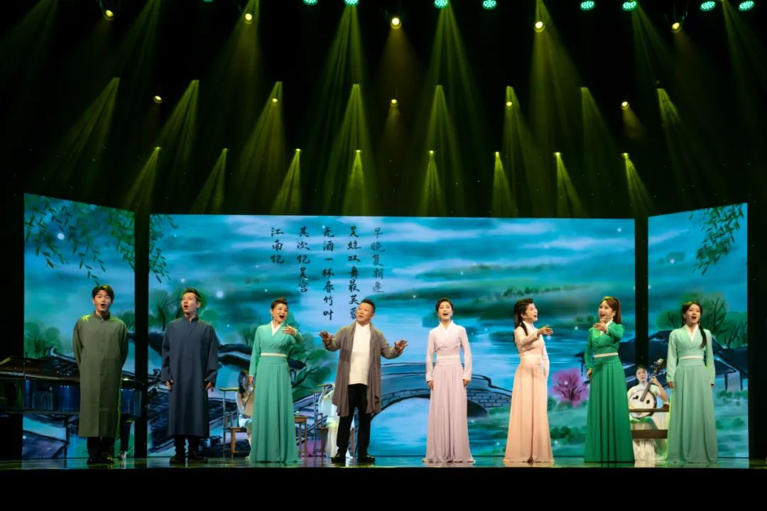 我16岁插队农村,对中国古诗词文化了解不多。今年在长宁文化艺术中心聆听了“我们的中国梦,文化进万家——《能不忆江南》古谱诗词”音乐会后,我被古诗词迷人的韵味深深地打动。犹记得,最后一个表演曲目,舞台背景是一幅中国山水画:一条蜿蜒的小河,一座小桥横跨其上,桥上一人撑伞独行;雾气弥漫的河面上有一叶轻舟滑过,岸边的红花给清雅的画面增添了生气和色彩。大提琴和笛箫演奏者身着古装像嵌在画面中一般落座,深沉而古朴的音乐增添了氛围感。舞台上,来自上海歌舞团的歌唱家吟唱着白居易的诗作:“江南好,风景旧曾谙,日初江花红胜火,春来江水绿如蓝,能不忆江南?”我沉醉在这场由诗乐画营造的意境中,思绪仿佛回到了一千多年前的唐朝,江南的美景恍然就在眼前。