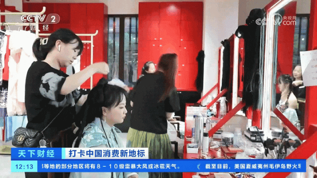 沉浸式的古镇游览一定少不了一次换装体验,古装店也是很多游客首选的打卡地,在园区内一共有7家这样的古装店提供服装的租赁、销售以及装造摄影等服务。据了解,店里经典的汉服全天的租赁价格是199元,店内所有的种类加起来有1000套左右的古装汉服,最大的游客承载能力达到500-600人次。