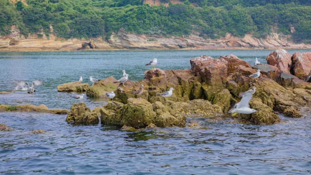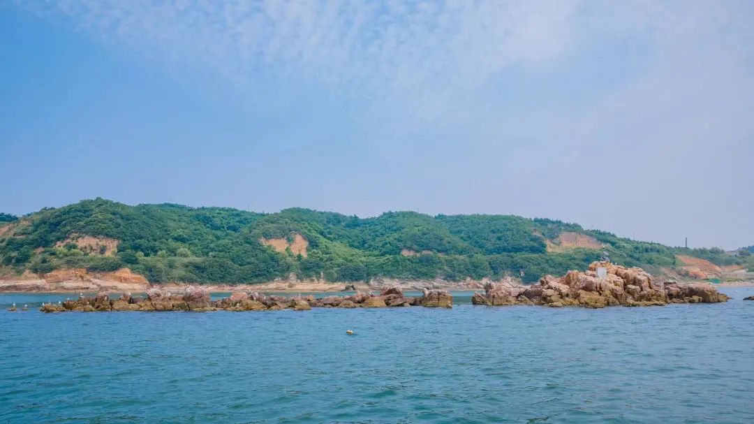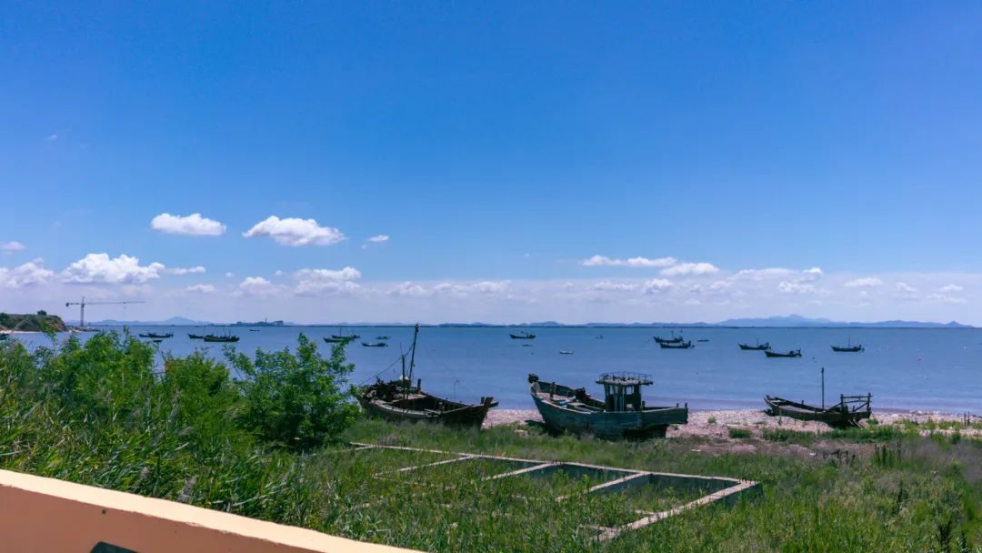 在交流岛街道前哨村海滨浴场,被清理整顿后的岸线水清沙白、海域焕然一新,十几艘小渔船静静地停泊在海面上,如诗如画、美不胜收。
