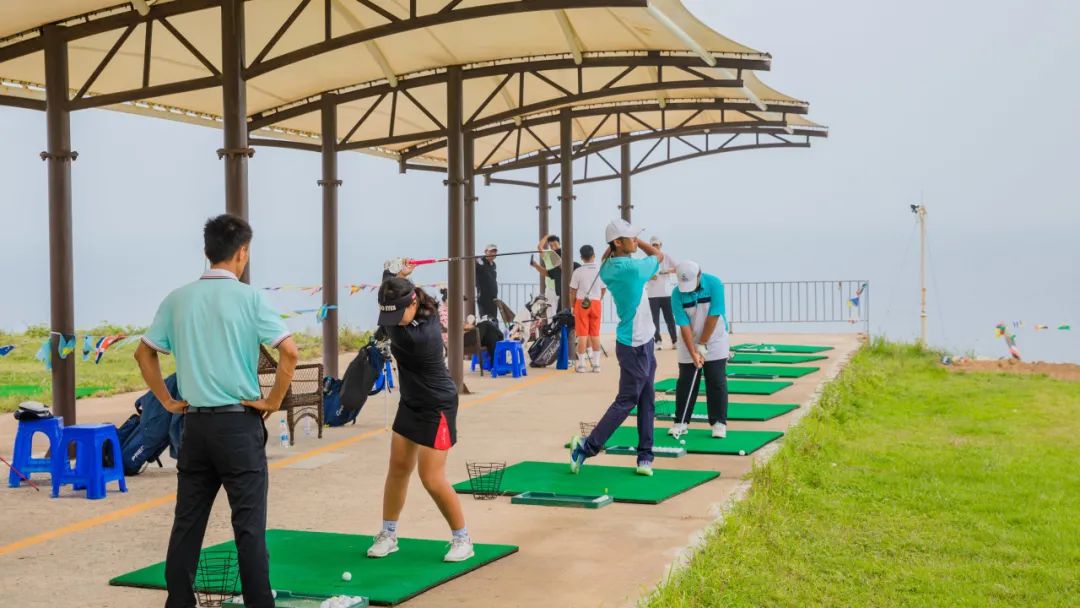 大V们走进高尔夫海滨练习场,体验挥杆乐趣,在宽敞绿地和清新空气中感受高尔夫运动带来的快乐。