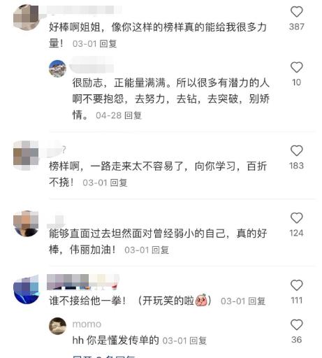 在成为世界冠军之前,她先后做过服务员、保安、幼儿园老师、保镖、健身房教练等工作,她也晒出过自己在地铁口发传单的短视频,配文中说道:“2011年在地铁口发传单,有人拒绝,也有人接单,时间过得真快……”