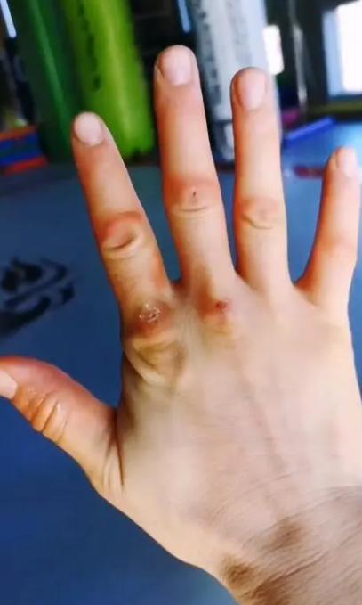 这是张伟丽的手,被她自己吐槽不像是个女孩的手。最让人惊讶的是食指上的茧子都被磨掉了。一般人都是磨出老茧,张伟丽是磨掉茧子,这一幕同样让人感到震撼。