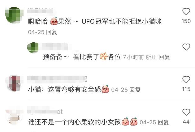 网友也发出评论:看来世界冠军也无法拒绝小猫啊。