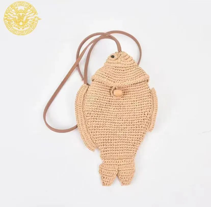 这款草编单肩包采用温岭海洋元素——海鱼的形状作为整体构架,展现出海洋的自然韵味。材质选择来自马达加斯加的天然材料——酒椰纤维,既保证了包包的耐用性,又具有良好的透气性和舒适性。同时,整体采用温岭草编传统技艺编织而成,稳固耐用。