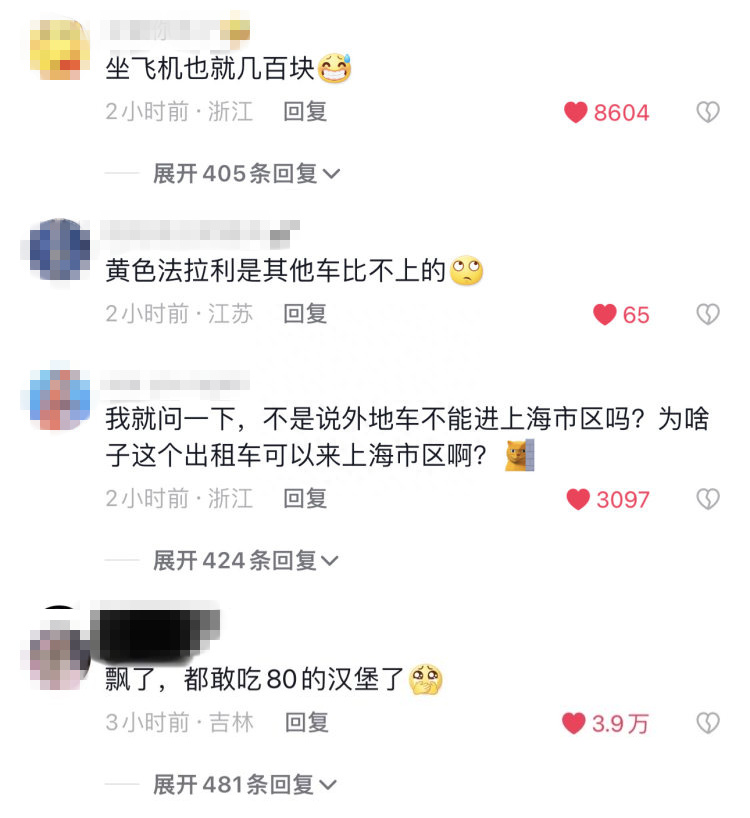 “到底是谁会包车去上海啊?”有网友提出疑问;“开一单顶三个月,真的羡慕了!”也有来自同行的羡慕;“飘了,都敢吃80的汉堡了。”这条网友评论得到了3.9万点赞。