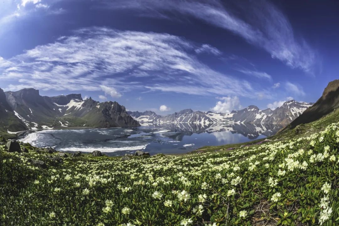 海拔1400米的长白山西景区的这片花海天池,是东北亚唯一的原始高山植被的宝库。