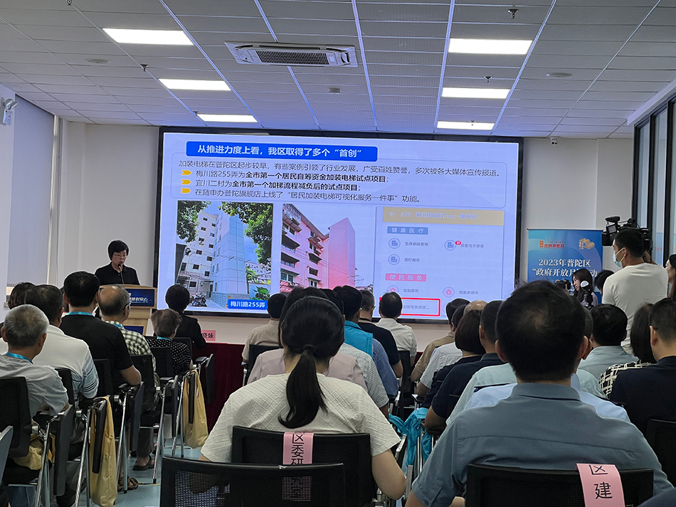 8月22日下午,上海市普陀区邀请30位公众代表,参加普陀区2023年“政府开放月”系列活动之既有多层住宅加装电梯政策宣传专场活动。活动中透露,针对居民遇到的“加梯”问题,普陀区在区政府网站新上线了既有多层住宅加装电梯政策集成式发布页面,让有加梯意愿的居民对加梯流程办理有直观的了解,办事少走弯路。同时,居民可以通过随申办App,随时查阅到所在小区加装电梯进度。