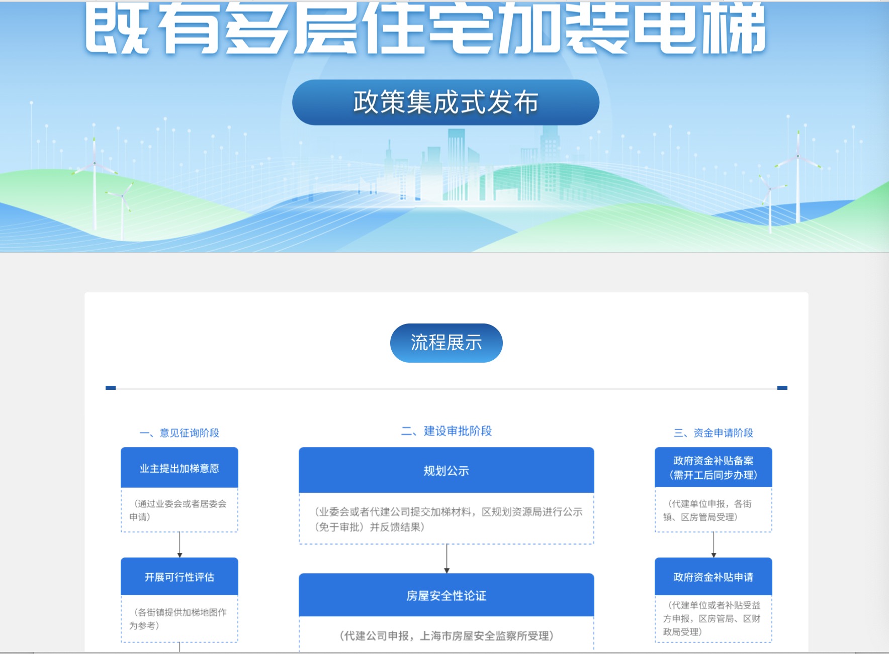 普陀区在区政府网站新上线了既有多层住宅加装电梯政策集成式发布页面。 网络截图