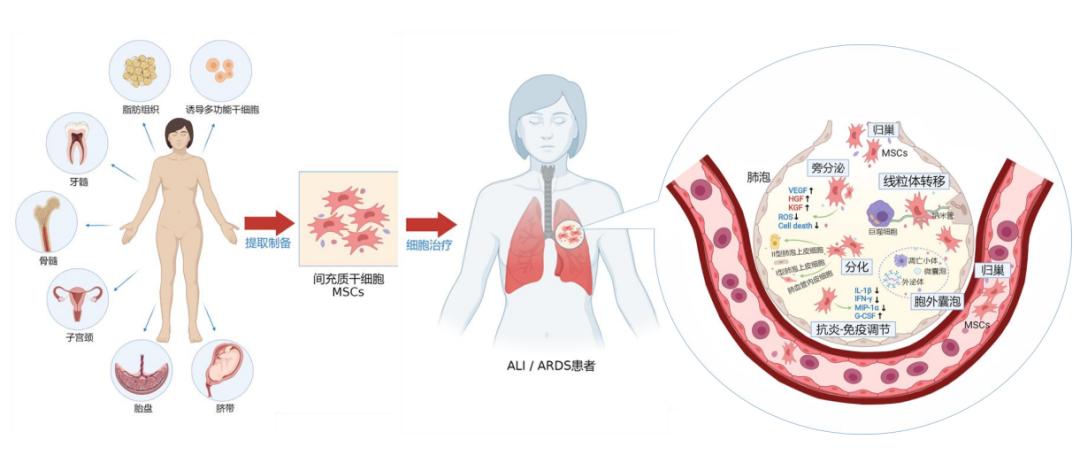 图1 各种来源MSCs治疗ALI/ARDS的可能机一、临床前研究