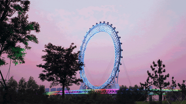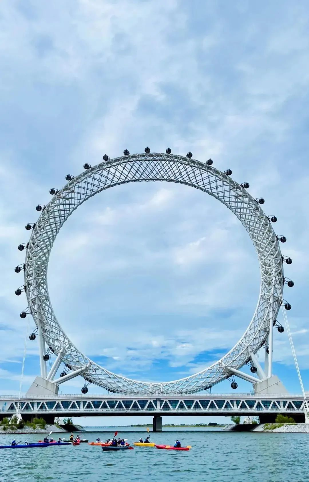 摩天轮每转过一圈,世界上就会有一对情人终成眷属。“渤海之眼”摩天轮坐落在潍坊白浪河大桥中央,宛如一枚钻戒。和TA乘坐摩天轮来到最高处,极目四顾,海天相连,帆影点点,仿佛进入梦的云端,把全世界捧到TA的手上。