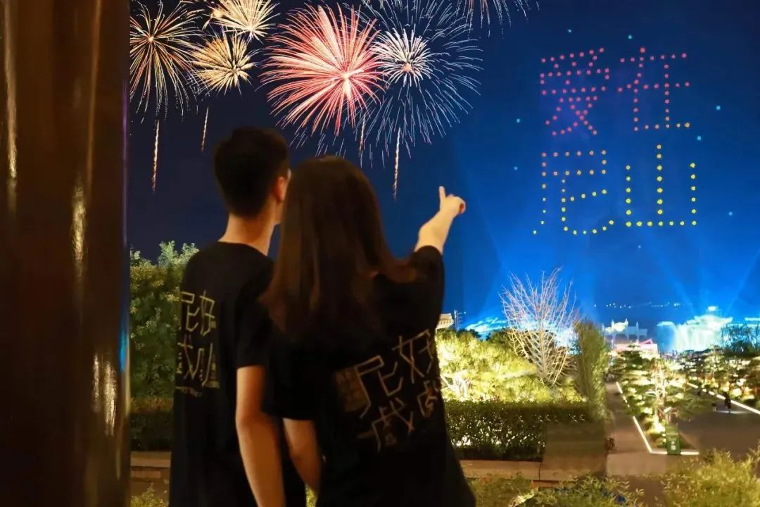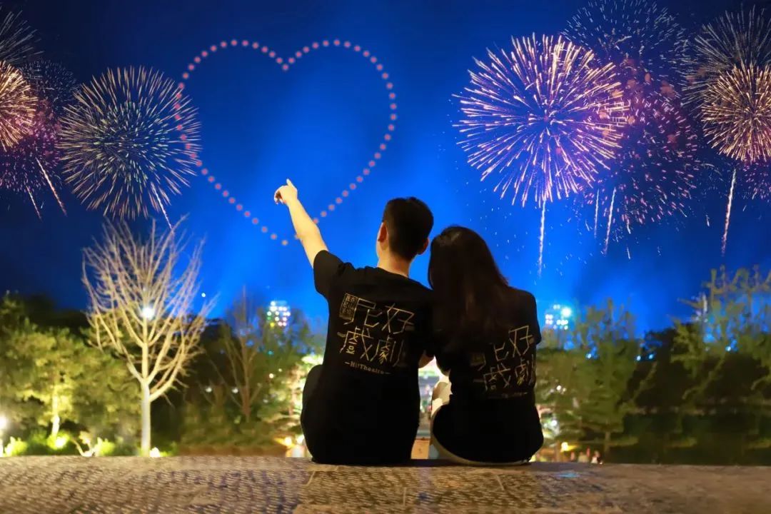 与TA牵手沿圣水湖散步,与唯美花海合影,共同期待一场来自尼山夜空的顶级浪漫。璀璨繁星汇聚成河,光影水秀如梦如幻,在烟火下相拥,数百架无人机在空中汇聚成心形,帮你把心底的爱意写满夜空,见证甜蜜瞬间。