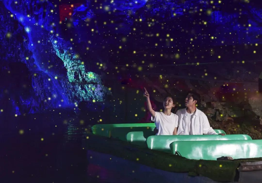 在临沂沂水县境内,有这样一个宝藏的地下“仙境”:乘船驶过水洞黑幕的帐网,萤火虫闪耀着微微荧光,如点点繁星,若银河坠地,莹莹闪亮,这便是地下大峡谷内部绝色。漫步于溶洞内,数不清的钟乳石在五彩灯光的投射下,呈现出一个光怪陆离的地下世界。