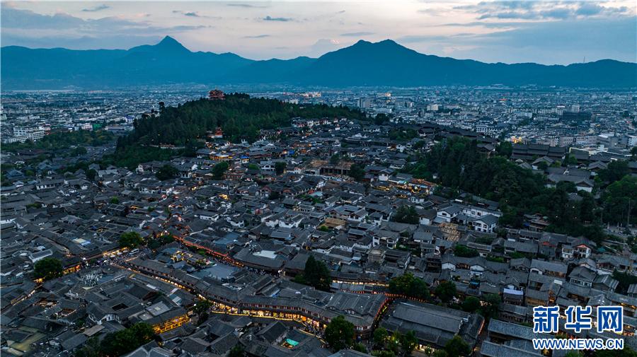 航拍的丽江古城美景(8月16日摄)。新华网 刘东 摄