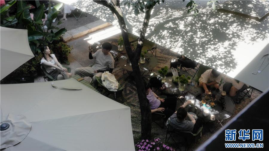 屋顶咖啡院子里休闲的客人(8月14日摄)。新华网 刘东 摄