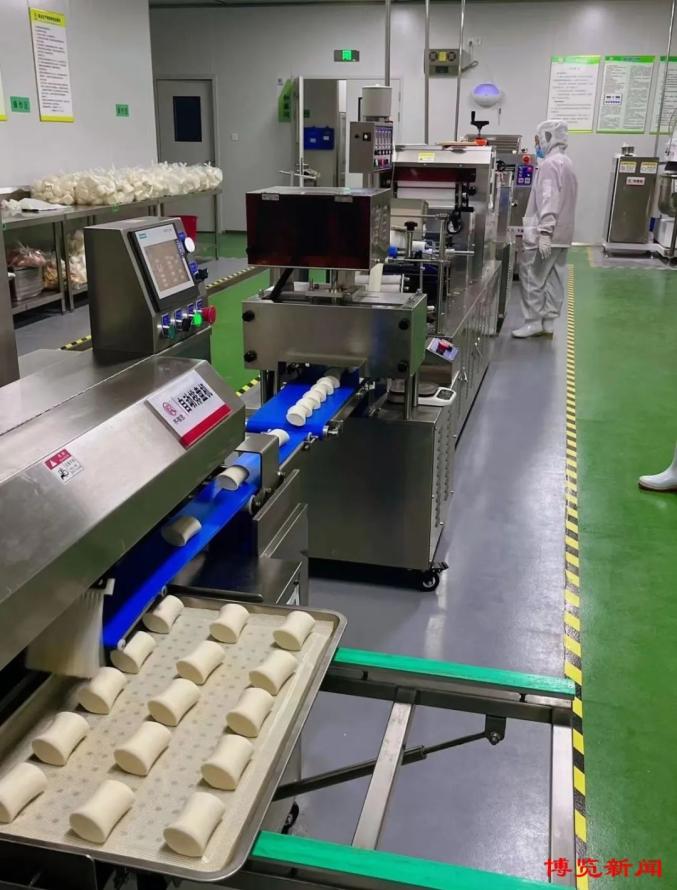 另外两个生产车间里,米饭和馒头、面包等主食也在同步制作中。一个车间里,一台国外进口的蒸汽米饭生产线上,设备领料后开始自动进行米饭制作,大米淘洗、蒸煮、装箱一体化完成,1小时后,600公斤大米加工出的1200公斤米饭热腾腾下了线。
