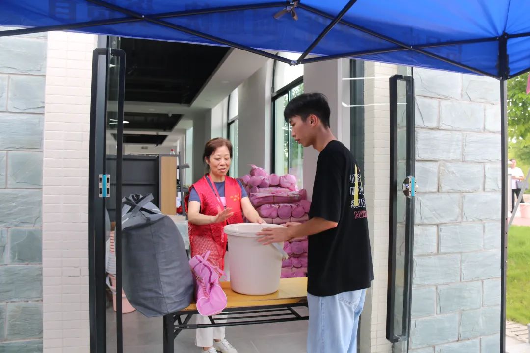 从上午8时30分起,新生们陆续到校,在老师和志愿者的指引下,新生有序完成报到登记、缴费、班级登记、宿舍安排等入学流程,同时,该校为每位学生免费提供住宿大礼包,包括枕头、被褥、水桶、衣架等,还准备了“开门红”抽奖礼品惊喜,让学生在轻松愉快的氛围下顺利报到入学。