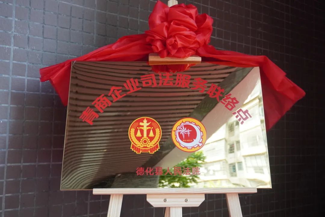 图 | 设立青商企业司法服务联络点日前,德化县青商会新会址揭牌启用。当天德化法院同时在该处设立了青商企业司法服务联络点,并与企业家座谈交流。