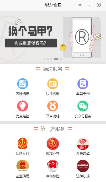 图 | “德法e企服”专栏线上精准发力,线下实时助力。该院在官方微信公众号开辟了“德法e企服”专栏,涵盖法律风险提示、典型案例、法律咨询等功能,实时在线解答企业法律问题。今年以来,该院已累计为50家中小微企业提供法治服务。