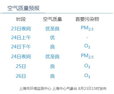 8月24日9时,闵行区AQI为28,优。昨天AQI为72,良,首要污染物臭氧。据上海市环境监测中心预报,今天下午良,夜间优-良,明天良,后天良。