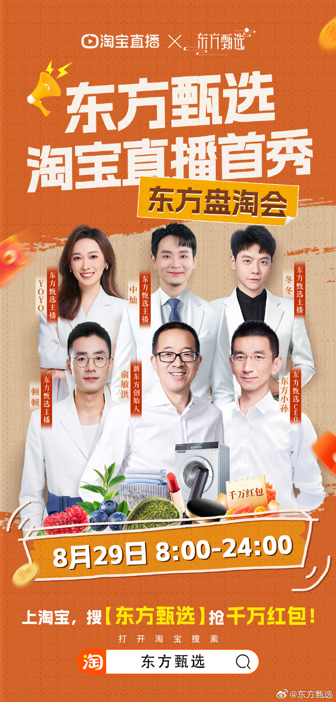 抖音留不住头部主播?东方甄选进军淘宝直播,俞敏洪亲自带队