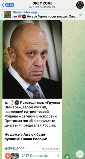 当地时间8月23日,瓦格纳电报频道“灰色地带”(grey zone)发文称,普里戈任被“俄罗斯的叛徒”杀害,证实普里戈任已在坠机事故中身亡的消息。