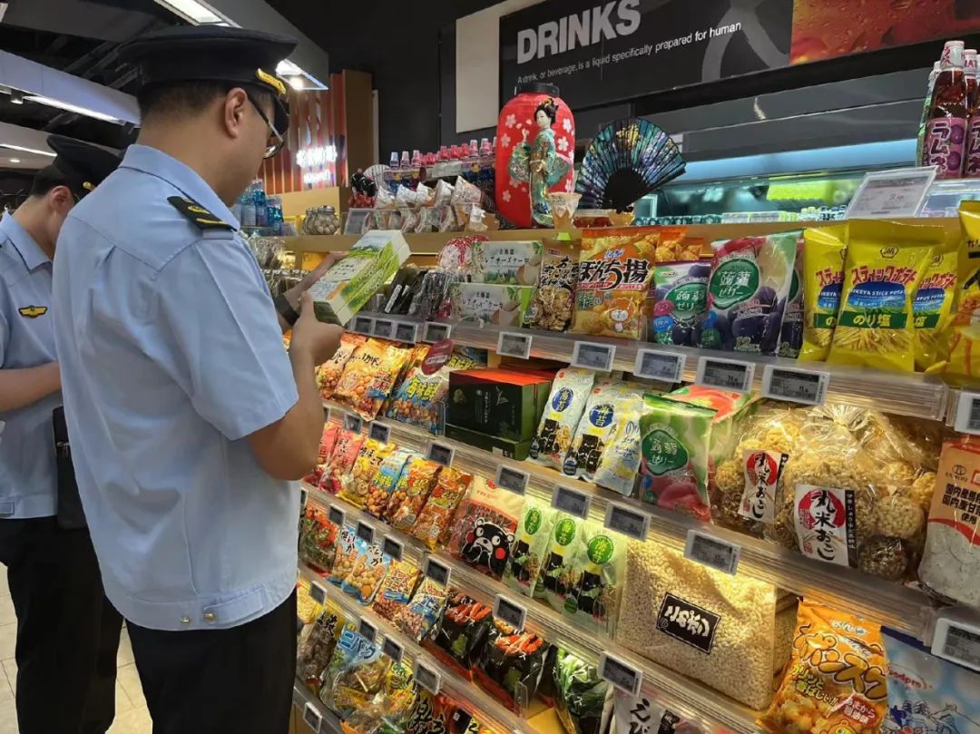 24日下午,闵行区梅陇市场监管所对辖区内进口日本食品销售情况进行了检查,在这家大型生鲜超市内,也未发现进口日本水产品。执法人员还对进口日本零食、酒类商品进行了检查,商品外包装均附有中文标签,报关单据保存齐全,未发现销售我国海关禁止进口的食品的情况。