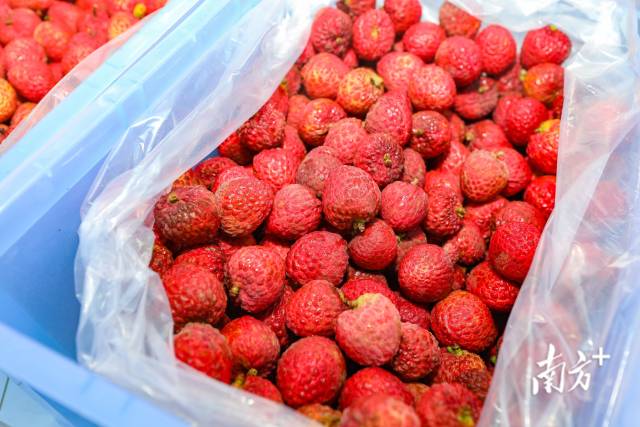 6月底摘下的荔枝,从冷库取出依旧新鲜如初。