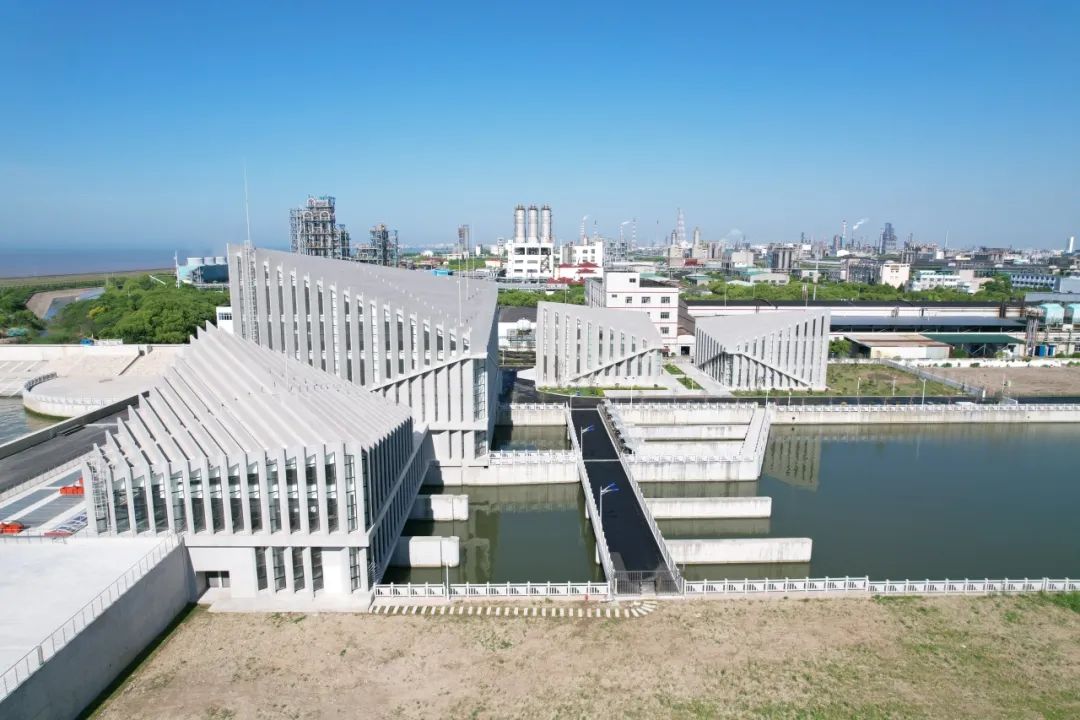 泵闸工程于2019年3月率先开工;2022年11月,完成全部水下工程验收,并顺利通水,助力区域防汛除涝;2023年6月15日,完成泵站试运行阶段验收,泵闸整体达到设计工况。