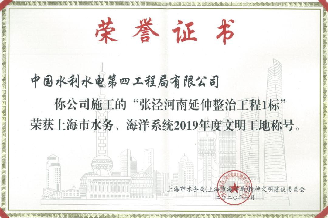 项目始终坚持高标准严要求,全过程做好安全、质量管理工作,深入开展文明工地、标化工地创建。2019年10月,市重大工程办公室在本项目举办了重大工程文明施工升级示范观摩会,并荣获市级文明工地;2020年,承办第六届“啄木鸟”杯上海市水务工程建设安全质量监督技能竞赛,项目建设受到行业内一致好评。工程建设过程中,张泾河项目6次接受水利部各类考核检查,其中,2019年、2021年代表上海接受水利部的质量工作考核且表现优异,为上海市连续三年取得水利部质量考核全国第一的好成绩作出了重要贡献。