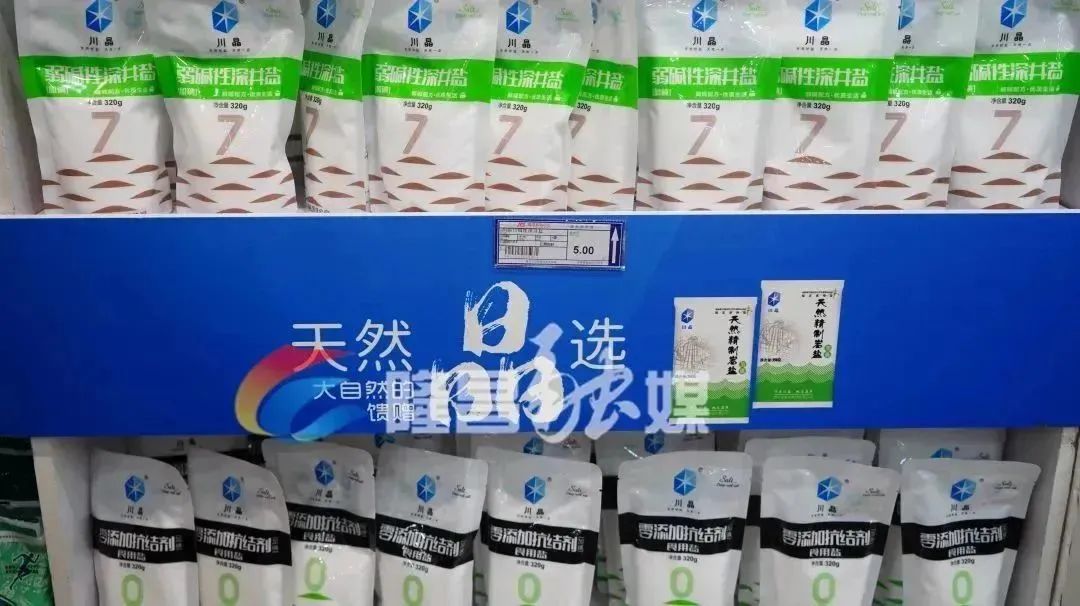 图 | 隆昌各大超市整齐摆放着多种食用盐现场有一些市民停下来挑选食盐