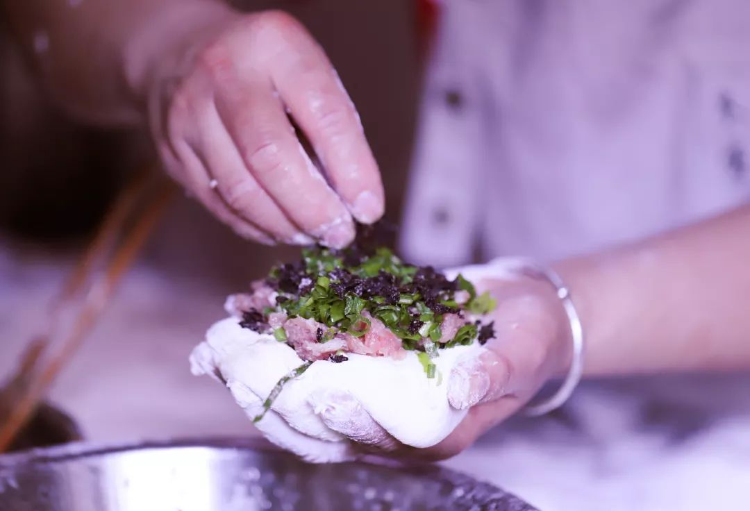 炊圆的咸鲜不仅来自肉馅,还来自一勺出锅时浇上的酱油。糯米粉皮包裹着肉馅,向上慢慢收口却不封口,蒸出锅时,往微微露头的馅料里浇上点酱油,香味四溢。