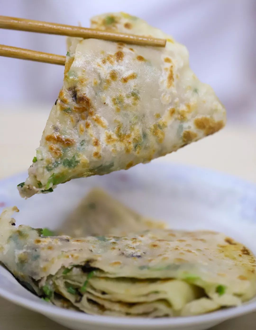 台州蛋饼奇妙之处在于鸡蛋是打在饼里面的,和着肉馅、虾仁等食材,美味就是这么扎实!