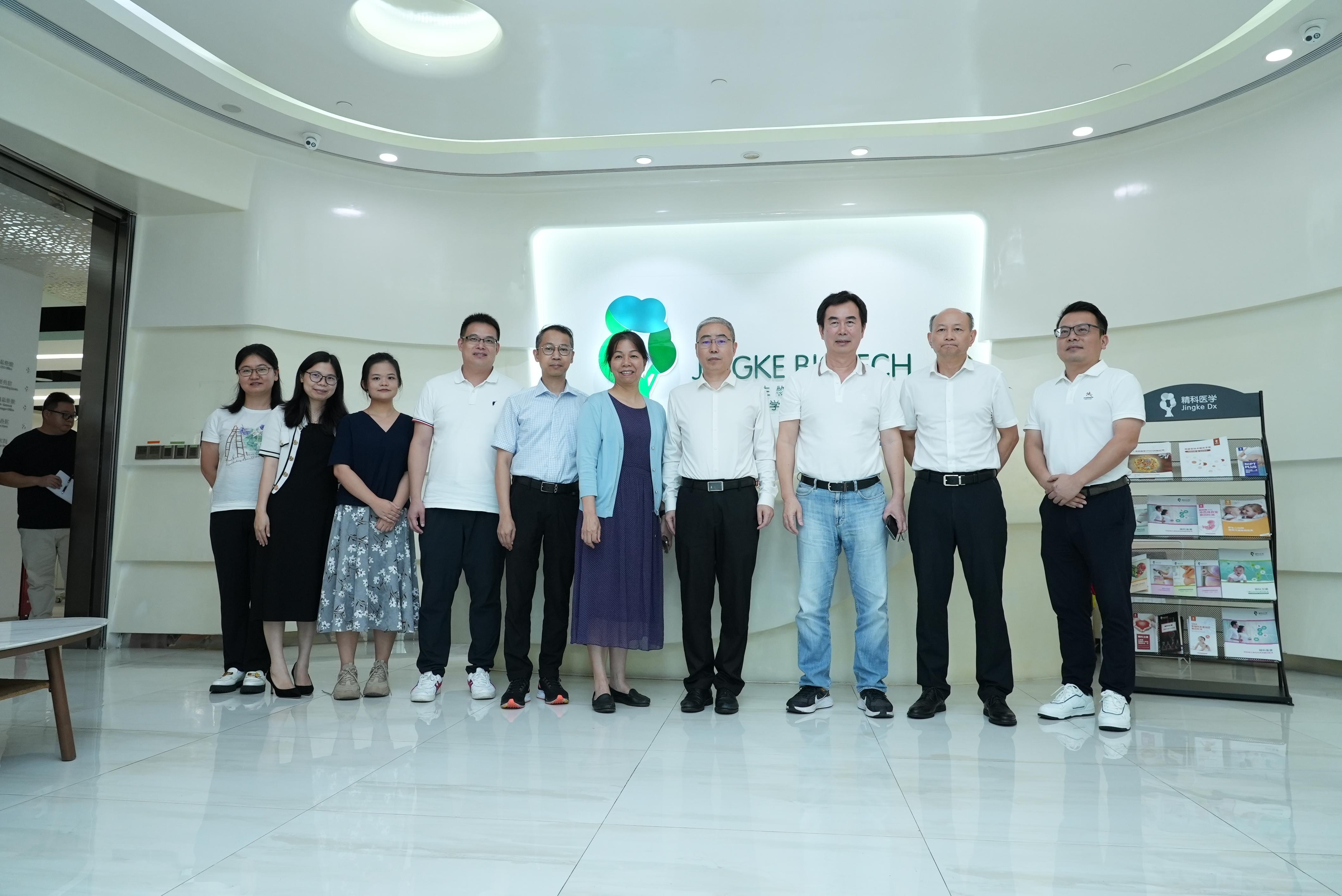 广东省人民医院教授、广东省临床检验质量控制中心前主任、学会精准检测分会主任委员邹伟民,暨南大学医学院药理学系主任,学会精准用药分会副主任委员林熙,中山大学孙逸仙纪念医院主任医师、博济医疗中心主任(健康体检中心主任、特诊中心主任)贵宾体检总检医师,学会精准健康管理分会副主任委员陈庆瑜,南方医科大学南方医院健康管理中心主治医师李小溪,广州精科医学检验所首席运营官罗兴城、首席信息官向阳、首席技术官蒋馥曼,精科产品注册部总监叶敏兰,精科实验室主任冯怡菁,精科器械研发副总监莫邦辉,精科销售总监黎金龙、汪金明,学会学术部副主任高晓琪等参加调研交流活动。