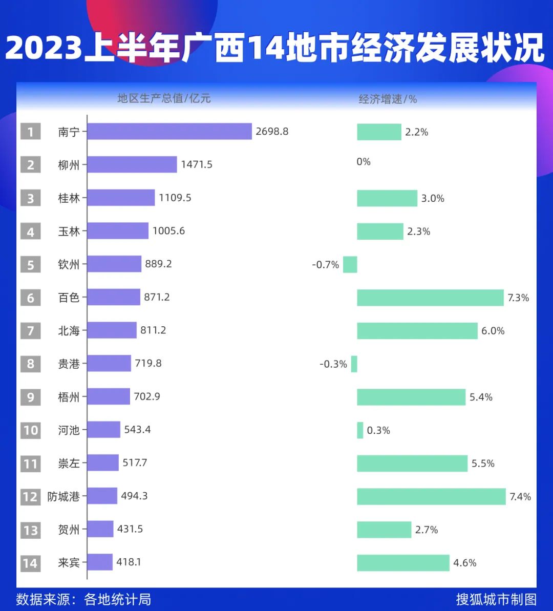 2023上半年广西14地市经济发展状况/搜狐城市制图