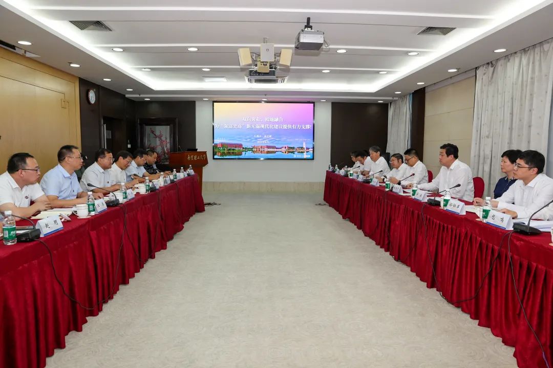 赵建军与校长付梦印、副校长李强等围绕做大做强南理工江阴校区、拓展多领域全方位合作进行工作会谈。