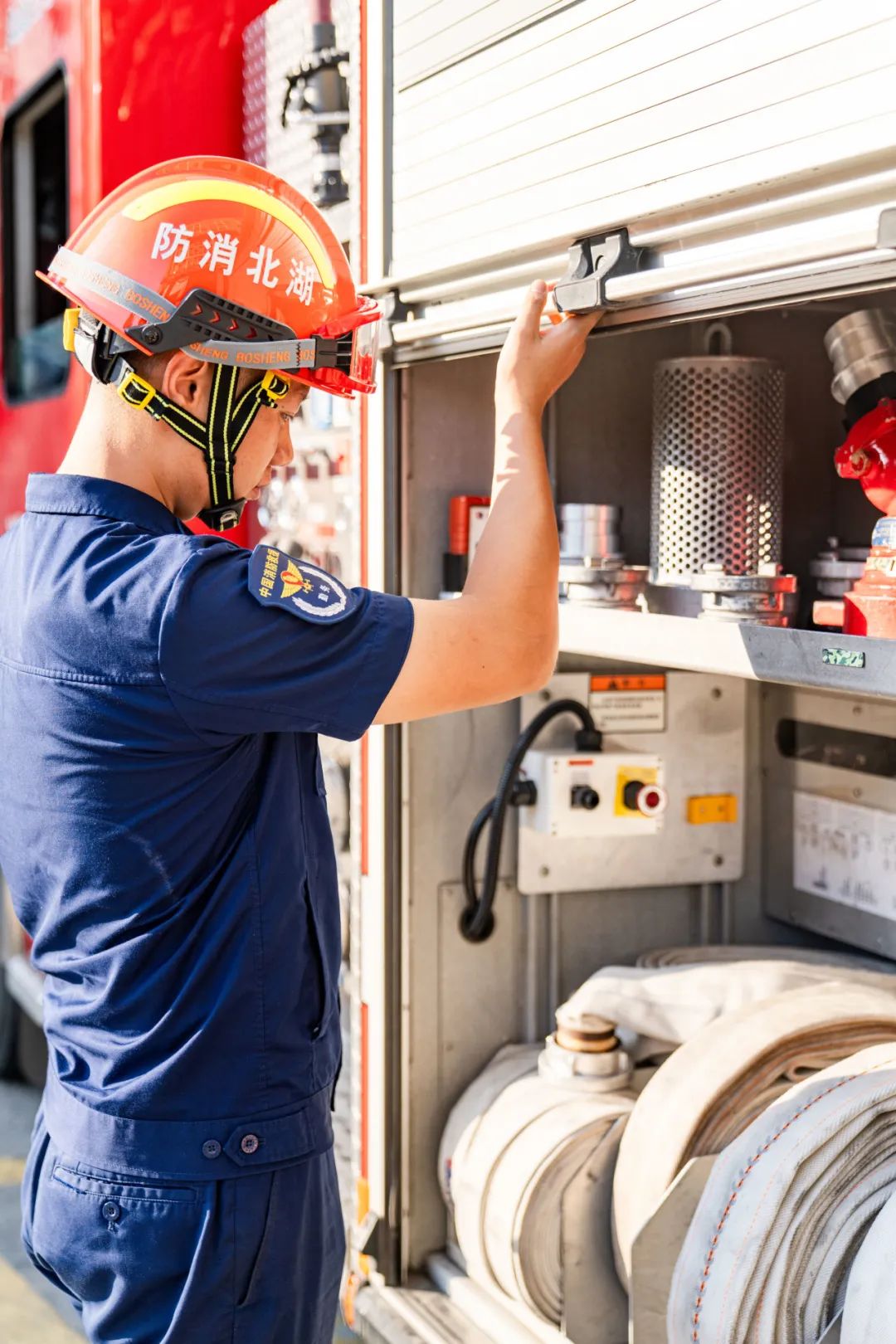 “有一次出警到一个小区门口,路口已经可以看到火了,我们立刻决定要把水罐车尽可能开进去,经过一个拐角时,我打了三四盘子,车头还是难过去,着急了一脚油,车边上就擦了。最后实在没办法,只能全部下车开始帮忙铺水带。”关山消防救援站的消防车上,常常备着100米以上的水带,就是为了应对这种情况。