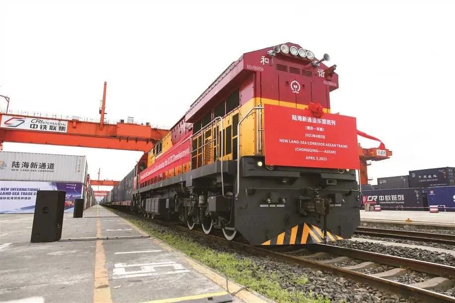 西部陆海新通道班列(重庆国际物流枢纽园区供图)重庆国际物流枢纽园区是沙坪坝区现代物流业的主战场。今年以来,园区通过拓展“4+N”通道功能,开通重庆—万象—新加坡铁公联运线路、开行对欧新能源车班列、新增德国汉堡海外分拨仓等一批开放成果层出不穷,大幅带动了地区产业的高质量发展。