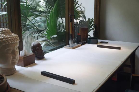 入门处常年有植物特有的清香,轻轻柔柔,疏疏淡淡,配合着墨香,一进门便能感觉到文雅之气。