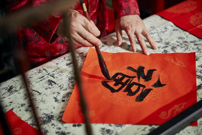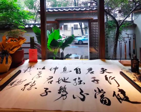 桌上的笔墨纸砚常年有人光顾,食客们在用餐前总忍不住在此一展身手,获得满堂喝彩后似乎食物也会变得更美味些。