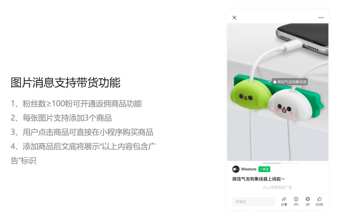 而添加商品之后,该图片消息底部还会展示“以上内容包含广告”的标识。原标题:《微信新功能上线!新增多个“身份”选择→》