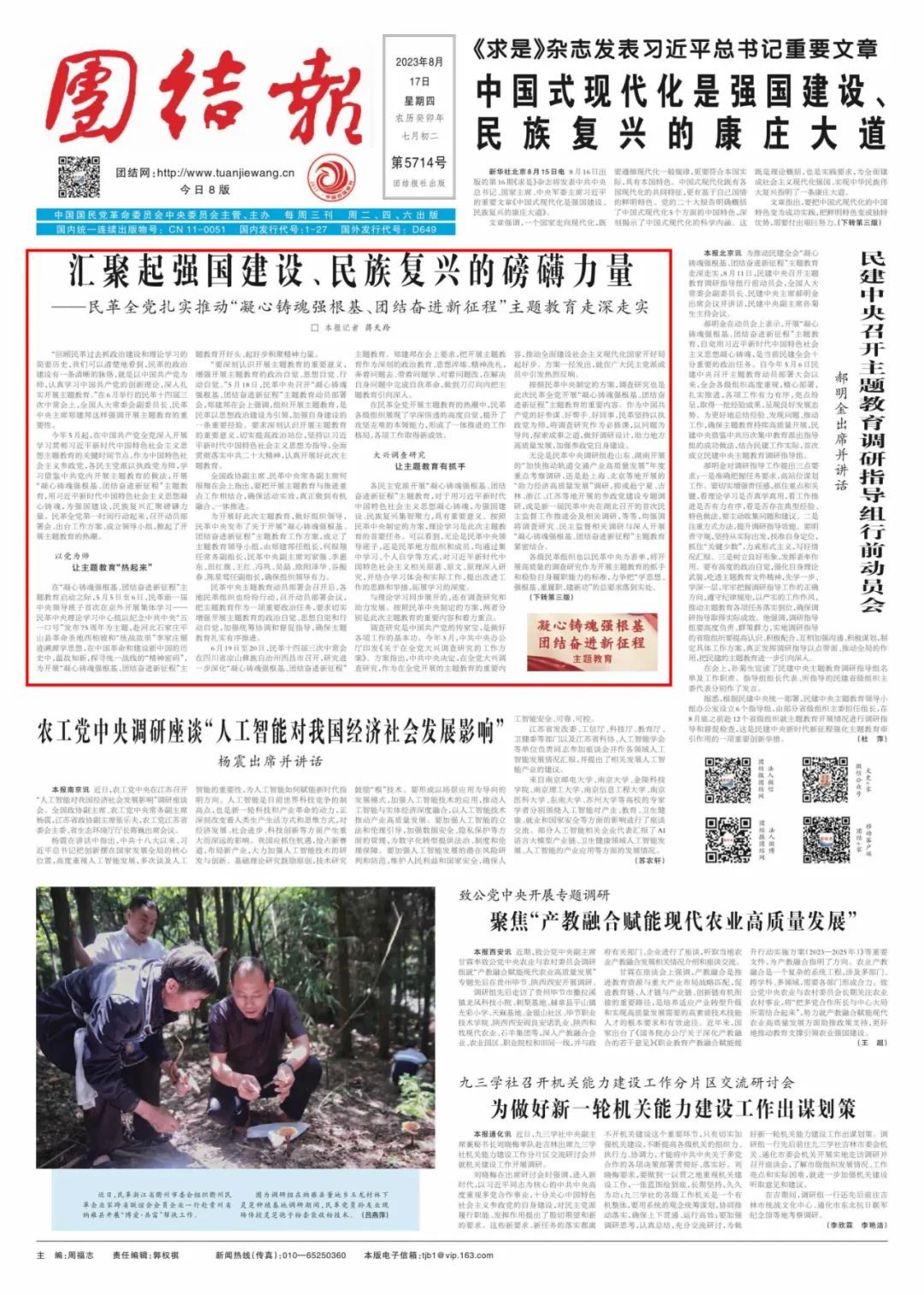 实干担当促发展。随着“凝心铸魂强根基、团结奋进新征程”主题教育的深入开展,民革全党正不断把学习习近平新时代中国特色社会主义思想的成果转化为围绕中心、服务大局的实际行动,找准服务中国式现代化的着力点和切入点,真正把民主党派所长与国家大局所需结合起来,把多党合作事业不断推向前进。