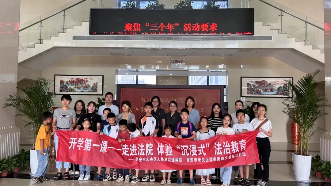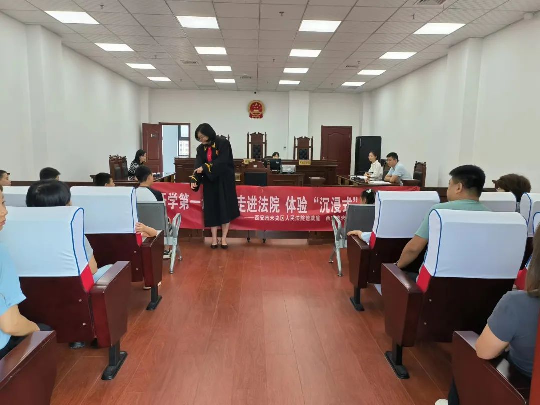 为加强未成年人法治宣传教育,护航青少年健康成长,8月29日上午,未央法院速裁审判庭联合未央区谭家街道文景东区社区,共同举办“开学第一课——走进法院 体验‘沉浸式’法治教育”活动,社区20余名学生及家长走进未央法院,“零距离”感受司法的力量和温度。